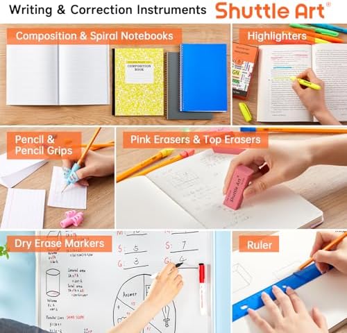 - 102 PCS ALL-IN-ONE KIT: Shuttle Art 102 pieces back to school supplies kit includes all the school supplies for grade K-12 school students and teachers, a great mix of writing, crafting, and organizing supplies for a successful school year. (WARNING: CHOKING HAZARD---Small parts, not for children 3 yrs and under.)