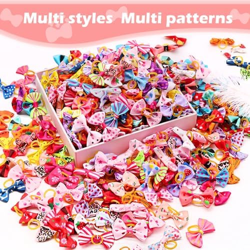 Super Value 100PCS - The cute girl dog bows set contains 100 pieces/ 50 pairs puppy bowknot in various patterns. The dog grooming bows is perfect to attach to pet hair for a fancy hairstyle.Dog Bows Size - The size of the pet grooming bows is about 1.42 inches, which is suitable for small and medium pets. The size of the puppy rubber band is specially designed for pet , suitable for long-haired or short-haired pets.Strong & Durable - The dog hair accessories for small dogs are made of high quality grosgrain ribbons and rubber bands. The handmade bow is sewn on the back of the rubber band and glued together with hot glue for double fixation. All bows keep good shape, lovely and beautiful.Very cute hair bows, make your pet (dog, cat ,rabbit)looks more lovely and attractive,can DIY dog bow tie. They also can fit for baby girls cat ,rabbit,perfect for any Accessories. perfect grooming bows for your lovely pet.Excellent Pet Hair accessories - The dog hair bows is in good shape and cute, very suitable for daily wear and various holiday parties, such as pet birthday party, Christmas party, pet beauty salon, etc. It is very suitable for yorkie, shitzu and other puppy dogs.