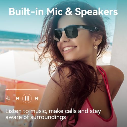 • 【Polarized Sunglasses Lenses】M9 Pro smart glasses features UV400 polarized full-protection lenses protect your eyes from the sun with excellent color, clarity and contrast.And the bluetooth sunglasses are made of TR90 material , it will be more durable.