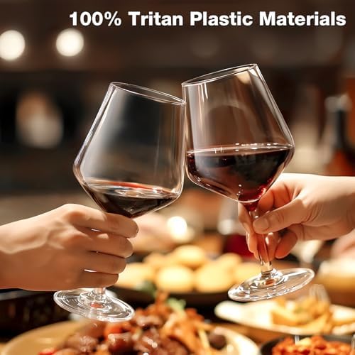 - High-Quality Wine Glass - Our wine glasses made of top quality 100% plastic. Plastic glasses retain their clear & glass-like clarity, sparkle beautifully in the light, elevating a unique drinking experience. Cheers!