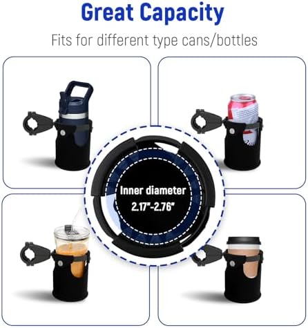 - Great Capacity: With an inner diameter of 2.17"-2.76" and a height of 4.92", this cup holder accommodates cups, cans, and bottles of different sizes. It comfortably fits standard even smaller water bottles, ensuring your drink is conveniently within reach without spillage