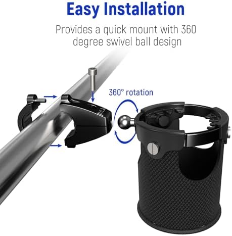 - Versatile Fit 0.87"-1.25" Pole: The C3 motorcycle drink holder comes with two types of spacers, adaptable to handlebars/poles/bumpers with diameters ranging from 7/8" to 1 1/4". Compatible with various vehicles like motorcycles, Can-Am, ATVs, strollers, scooters, yachts, bicycles, boats, cruisers, canoes, golf carts, wheelchairs, and more