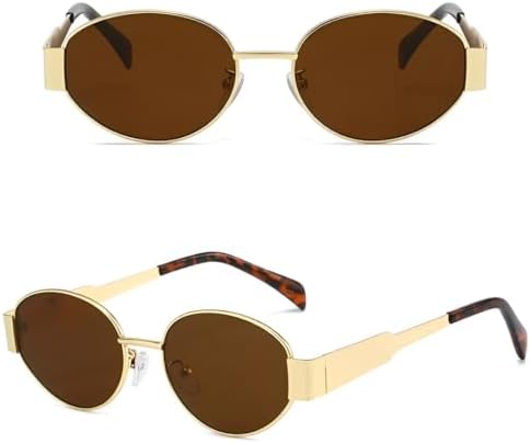 Retro Oval Sunglasses for Women Men - Trendy Oval Sun Glasses - Retro Classic Shades Sunglasses with UV400 Protection (Gold Frame/Brown Lens)