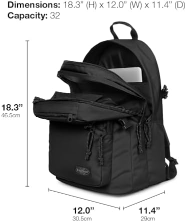 EASTPAK Double Pro – 32L Performance Backpack with 16" Laptop Sleeve, Dual Compartments, Security Pocket, Bottle Holder & Organizer, Black