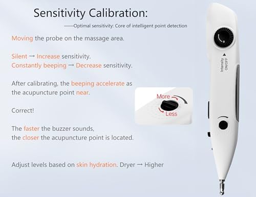 - SENSITIVITY: Smart Finder, Buzzer Reminder. Moving the probe on the acupuncture area: Silent, increase. Beeps constantly, decrease. After calibrating, the beeping accelerate as the acupuncture point near. Correct! And the faster the buzzer sounds, the closer the acupuncture point locates. Adjust levels based on skin hydration.