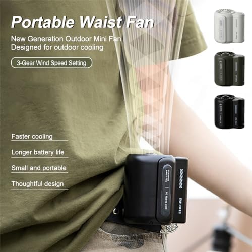 • 【Three Wind Speed Settings】: The waist clip portable fan uses turbine-driven air outlets to create a stable and powerful ring of airflow, quickly delivering heat flow and chasing away the stuffy heat. The first soft wind is like a breeze blowing on your face, the second natural wind is comfortable and chases away the stuffy heat, and the third strong wind feels cool and chases away the heat. You can adjust to the most comfortable wind speed according to your needs.