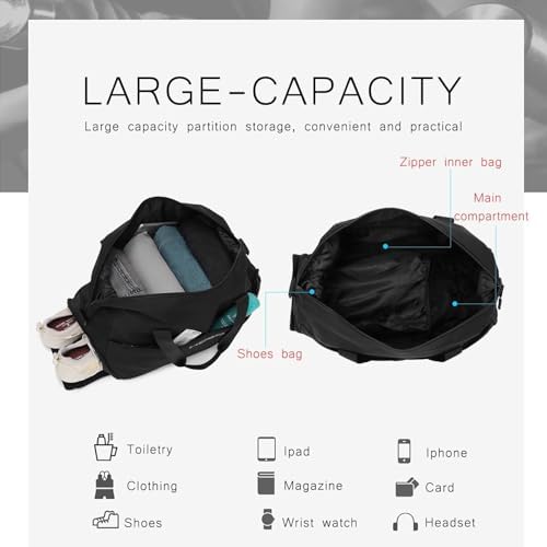 - ⭐【Large Capacity Multi-Compartment Sport Duffel Bag】: This small women gym bag has a large capacity of 32L, which can also meet the storage needs of 3 days of travel. The main compartment of the women fitness bag can hold clothes, cosmetic bags, toiletries, computers, ipads, documents and other items, the inner zipper pocket can hold valuables, and the 2 multi-functional front pockets of the luggage bag can hold mobile phones, power banks, cosmetics, documents and other commonly used items.