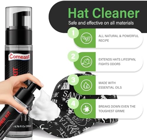 Hat Cleaner Kit,Ready-To-Use Foam,Quick Drying for Cleaning Baseball Caps of All Materials Cotton,Wool,Leather,Felt and More Cleans 50+ Hats (Cleaner 6.76oz+Deodorizer 6.76oz,Towel,Brush)
