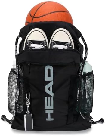 - ⭐【Thickened Gym Drawstring Backpack】HEAD sports draw string backpack is made of thickened polyester material, which is soft and comfortable, lightweight, strong load-bearing, wear-resistant, durable, folded and not easy to wrinkle. The drawstring of the cinch bag is high-quality and thickened to prevent it from sinking into your shoulders, which helps to reduce the burden on your shoulders, making it more comfortable to use and extending the service life of the basketball drawstring backpack.