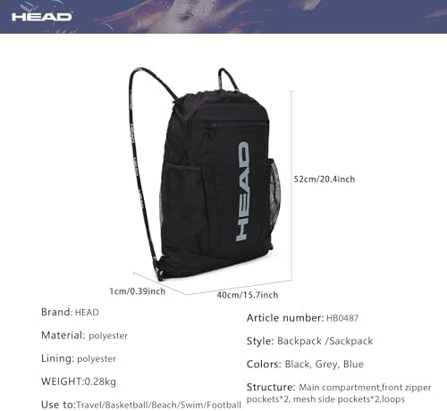 - ⭐【Excellent After-Sales Service】HEAD: We always believe in and adhere to the quality of our waterproof drawstring gym sackpack. If you have any questions or suggestions about this large sports drawstring backpack, please contact us, we will give you a satisfactory reply within 24 hours, your opinions are very valuable, thank you!