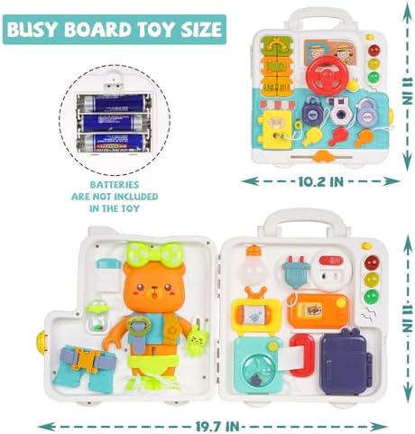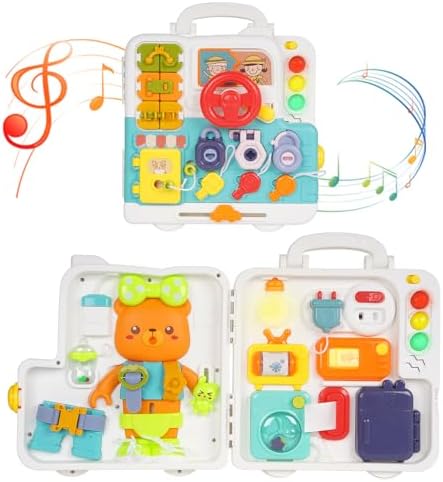 Toddler Busy Board Toys with Light Sound Montessori Sensory Travel Toys Kids Fine Motor Skill Learning Activity Board Early Educational Toy Motor Skills Developmental Toy Birthday Gift for Boy Girl