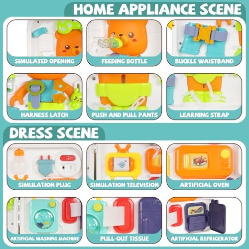 • Vibrant Cartoon Themes: Designed with colorful and cute cartoon themes, this activity board includes life themes, clothing themes, and home appliance themes. Each theme inspires your little one to touch, explore, and learn, providing endless fun and educational opportunities during their curiosity stage.