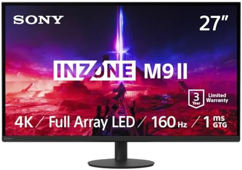 Sony INZONE M9 II 27” 4K UHD (3840 x 2160) 160Hz Full Array LED 1ms GtG NVIDIA G-SYNC Gaming Monitor, DisplayHDR 600, Built-in Speakers, DisplayPort 2.1 (UHBR10) /VRR HDMI 2.1-3 Year Limited Warranty