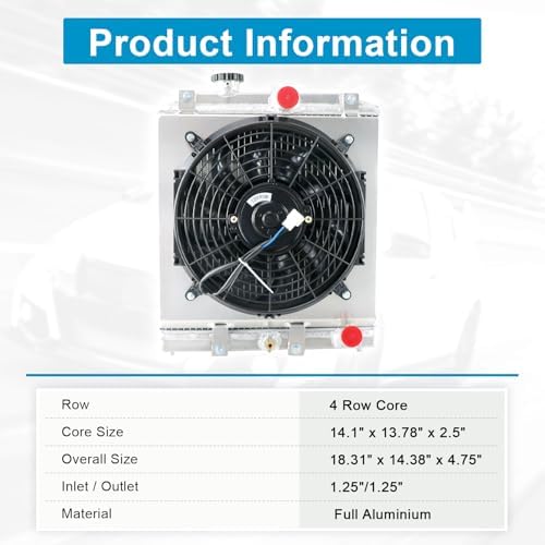 - Package included:1 X 4-Row AA5052 Aluminum Radiator;1 X Aluminum Shroud;1 X 12"Fan;1 X Relay Kit.