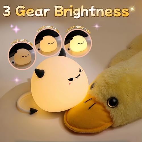 - 【Warm White with Dimming &Timmer】The night light has 3 brightness modes,and it has Warm Cool Light(3000K-3500K),you can adjust the brightness to suit your needs.you can touch The Lovely night light with 30 minutes timer, no need to manually shut it off.Dimmable Silicone Animal Nursery Night Light,Kawaii Rechargeable Bedside Touch Lamp,Room Decor Monster Light.Comfortable lighting helps children fall asleep faster,and warm lighting makes them no longer afraid of the darkness at night,allowing them to fall asleep peacefully.