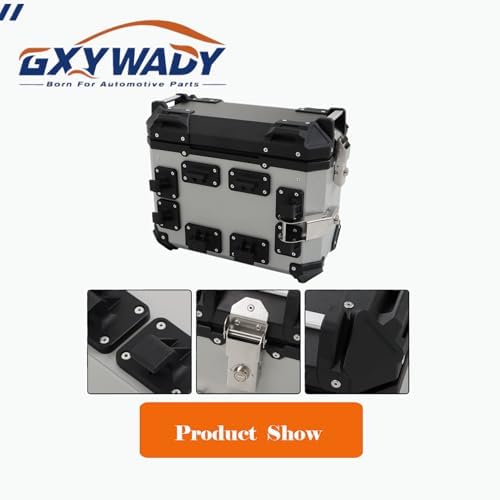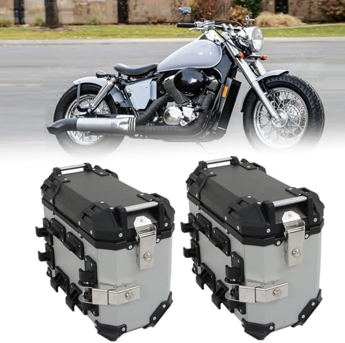 GXYWADY Universal Side Cases Motorcycle,36L Silver Aluminum Motorbike Hard Side Saddlebag Box Trunk with Support Racks
