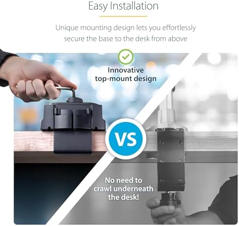 - QUICK INSTALLATION: Unique top-screw desk clamp for hassle-free installation without the need to go under the desk; Interchangeable C-clamp/grommet mount for desks up to 2" (50mm) thick; Includes tools for arm tension adjustment; Quick release VESA plates