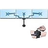 - DESK MOUNT MONITOR ARM: Triple monitor VESA mount (75x75/100x100mm) supports up to 15.4lb (7kg) 27-inch displays; Dual articulating and height adjustable steel arms w/central fixed monitor mount; C-clamp/grommet mounting