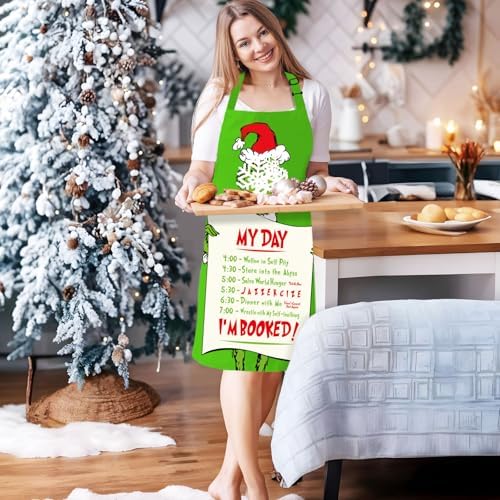 Funny Christmas Baking Apron for Women Men, Whoville Xmas Kitchen Aprons with 2 Pockets, Novelty Holiday Cooking Apron for Chef, Cute White Elephant Gifts for Bakers Mom Wife Husband Girlfriend Sister