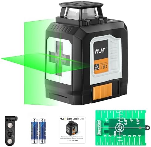 MJF 360° Laser Level, Green Self Leveling Cross Line Laser Tool with 4 Brightness Adjustment for Floor Tile Wall Construction, L-Bracket, Batteries & Carry Bag Included