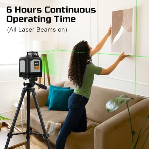 - ENERGY-SAVING MODE - In this mode, users can select varying green laser line brightness levels based on the specific work environment, enabling smarter operation. This self-leveling laser level emits a green laser beam that is four times brighter than standard red beams using the same power source, making it ideal for installing shelves, doors, windows, or furniture carpentry, hanging pictures, wallpapers, and more