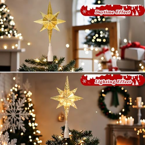 - 【Elegant Design】Crafted in a classic gold star shape, this christmas tree topper seamlessly blends modern aesthetics with traditional charm, complementing any style of Christmas tree.