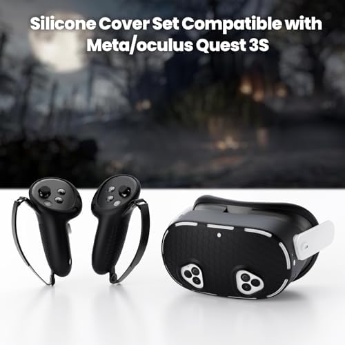 Juego de Fundas de Silicona Compatible con Accesorios Meta/Oculus Quest 3s, Funda de Silicona para Cara VR, Funda de Carcasa VR, Funda de Grip para Controlador, Juego de Protectores de Lentes de Cámara (Negro)