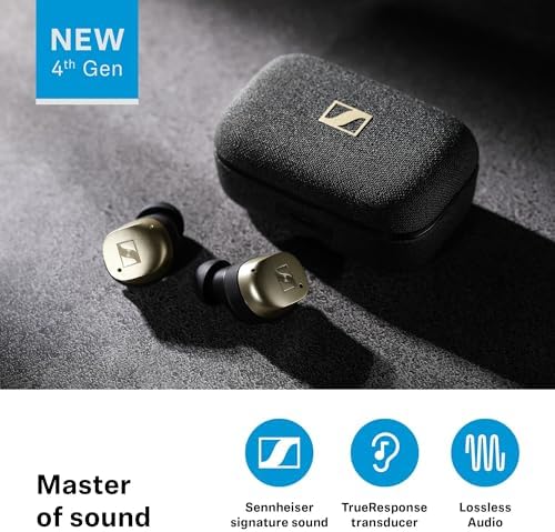 Sennheiser Momentum True Wireless 4 Bluetooth Smart Earbuds with Lossless Audio Capability, Customizable Fit, 30-Hour Battery Life, and Adaptive Noise Cancellation - Gold