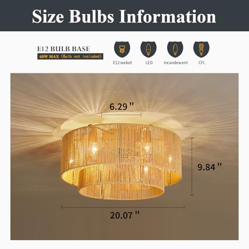 - Functional Home Ceiling Fan: This 20-inch bohemian rattan ceiling fan with light hides the enclosed blades inside a hand-woven bamboo wicker shade, adding style and functionality to your space, perfect for bedrooms, living rooms, dining rooms and kitchens.