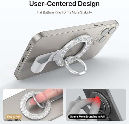 - 【Bling & High Luxury】SooPii magnetic phone ring holder is a dazzling accessory that not only adds sparkle to your device but also enhances grip and stability. Crafted with a magnetic design, it seamlessly attaches to MagSafe compatible cases, ensuring your phone stays securely in hand. The glittery is eye-catching, offering a touch of luxury to daily device usage.