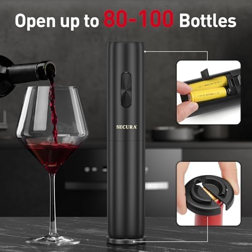 Secura Electric Wine Opener with Foil Cutter, Battery Operated Automatic Wine Bottle Opener, One-click Button Reusable Corkscrew Wine Opener for Wine Lovers Home Kitchen Bar Wedding Party