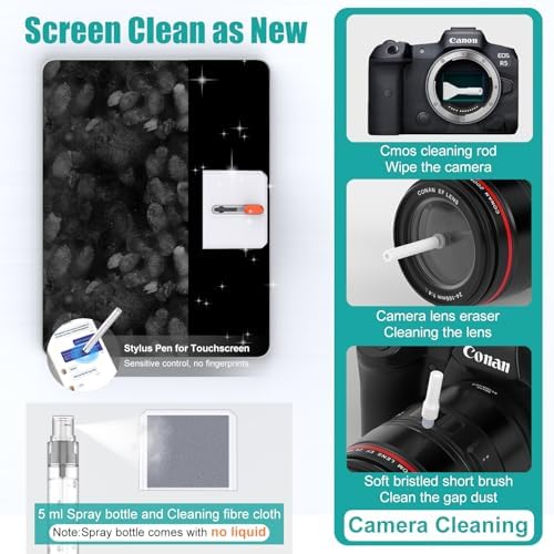 • Keyboard & PC Cleaning: The high-density keyboard cleaning brush can easily clean up the surface dust of the keyboard; Keycap puller and switch puller allow easy removal of mechanical keyboard parts. You can do a deeper cleanup by using the hard bristle brush and tweezer. Equipped with a 5 ml spray bottle (No liquid), fill in cleaning liquid, spray on the fiber cloth then wipe the screen (phone, tablet, PC monitor), to easily remove oil stains and fingerprints.