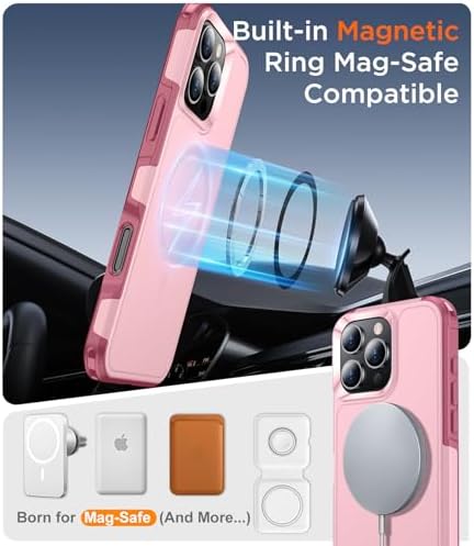 Temdan Designed for iPhone 16 Pro Max Case Magnetic, [Compatible with Magsafe][Military Grade Drop Protection] Dropproof Heavy Duty Tough Rugged Shockproof Phone Case for 16 Pro Max (6.9")-Pink