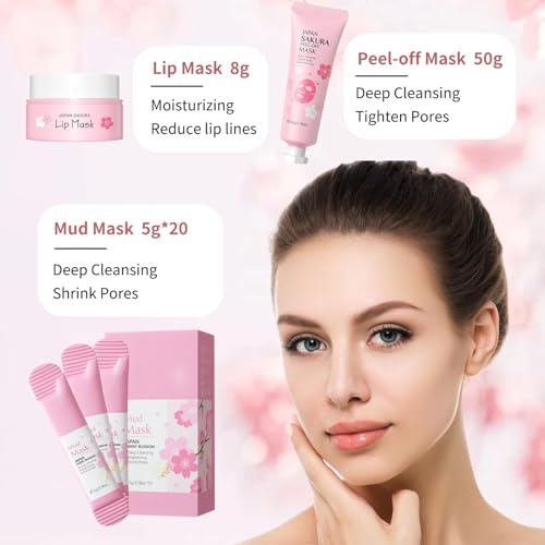 - 【Comprehensive Set Contents】As a complete skin care set women,this facial kit sakura includes mud mask, cleanser,serum,essence cream,tone up cream,eye cream,peel-off mask, lip mask and a headband,a facial cleansing brush.It's a perfect facial kit cherry blossom for those who are serious about their face care routine.