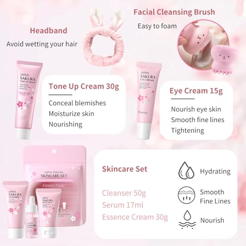 - 【Ideal for Gifting】This sakura facial skin care kit for women men is an excellent choice for gifting.It is a complete and luxurious skin care set teenagers that anyone would be delighted to receive.Packed with a variety of facial skin care products anti-aging,it shows thoughtfulness and care.Whether it's for a special occasion like Mother's Day gifts for mom or just to show someone you care,this skincare set gifts makes a great gift.