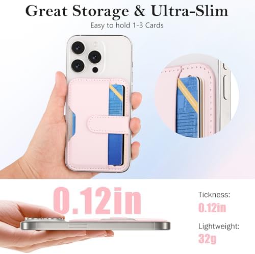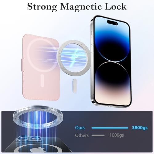 Magnetic Wallet Compatible with Magsafe,1Pack with Mag Safe Card Holder Compatible for Apple iPhone 15/14/13/12 Pro/Max/Plus/Case,Vegan Leather RFID Phone Wallet Fits 2 Cards-Pink