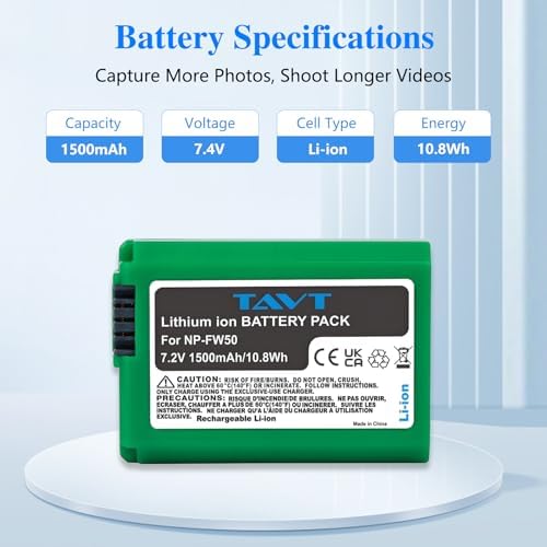 2-Pack NP-FW50 1500mAh Battery & Dual Smart LCD Charger – Compatible with Sony ZV-E10, A6000 A6300 A6500 A6400, A7/A7R/A7S (I & II), NEX-3N/5/6/7, RX10 II-IV, A33, A35, A37, A55
