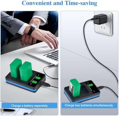 - 【Multiple Charging Methods】The charger has Micro USB and USB type C input, you can charge the battery with a power bank, socket, computer, laptop or in the car. It's very convenient for traveling, you can charge your camera battery anytime and anywhere.