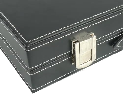 Conjunto de Backgammon con Estuche de Cuero Sintético Negro Cosido y Caja de Regalo - Deluxe 15 Pulgadas - INDUJOY