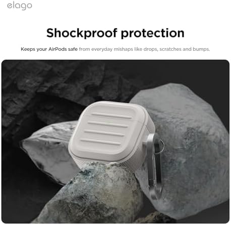 elago Armor Compatible with AirPods 4 Case - for AirPods 4th Generation Cover, Carabiner Included, Supports Wireless Charging, Shock Resistant, Full Protection (Stone)
