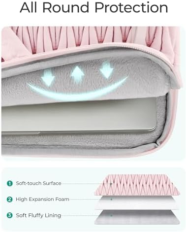 - Three-Layer Of Protection: This isn't just a laptop bag, it's a high-tech sandwich of safety! Layer 1: fluffy peach skin velvet fabric (for that plush feel). Layer 2: highly expandable padded cotton (because your laptop deserves a mattress too). Layer 3: softly Lined (the bouncy castle of protection). Together, they form the ultimate defense system for your precious tech. It's like a medieval castle, but for your MacBook