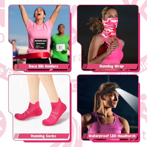 - WHAT'S IN OUR EXCLUSIVE RUNNING GIFT BOX – The gift box contains a runner's dream item to meet all the needs of runners all year round. From sweatband headband & wristband, folding water bottle, running beanie, race bib holders, running socks, running belt and running wrap to waterproof LED headlights and kinesiology tape, this set contains high-quality gear to enhance the running experience, rain or shine