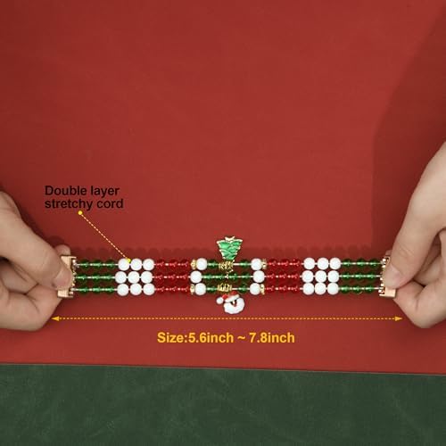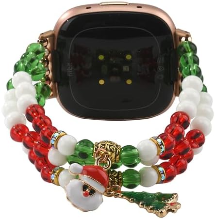 Wongeto Compatible with Fitbit Versa 3/Versa 4 Bands/Fitbit Sense/Sense 2 Bands for Women,Handmade Elastic Beadeds Bracelet for Fitbit Versa 4/Versa 3/Sense 2/Sense(Christmas Color)