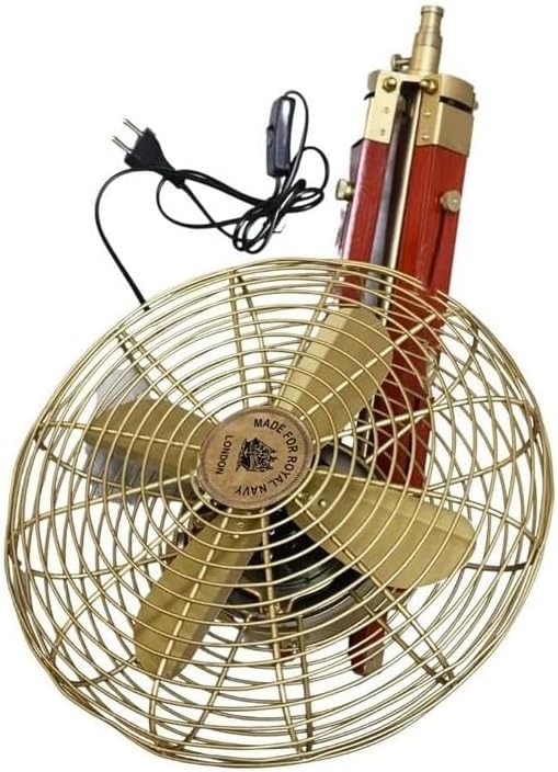 Fan Electric Corded Handmade Brass Antique Vintage Style Pedestal Fan with Wooden Adjustable Tripod Stand Retro Design, Unique Collectible, Functional Home Decor Vintage Reproduction