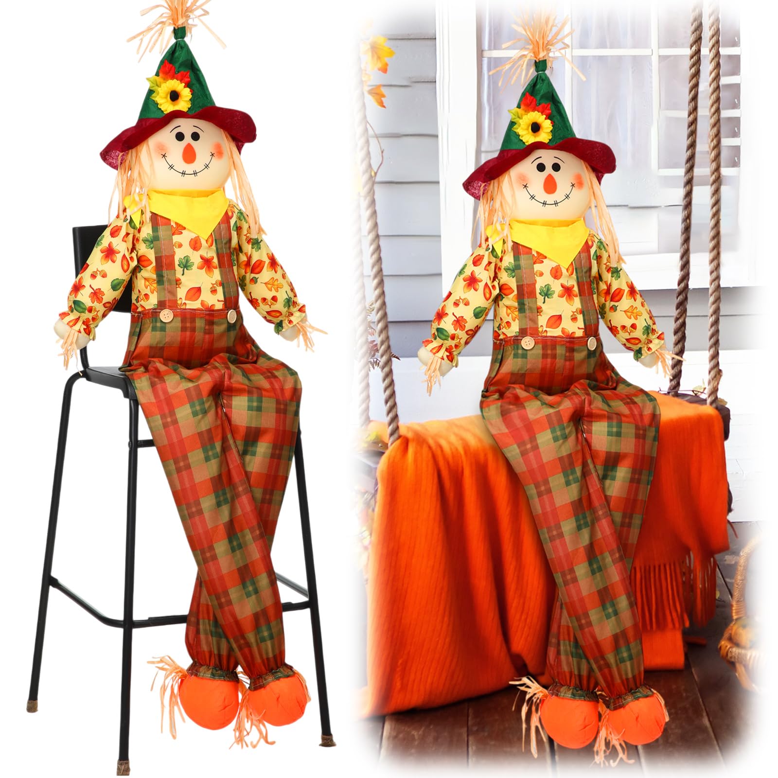 Seenelling 1 Pc Life Size Scarecrow Fall 60" Sitting Scarecr...