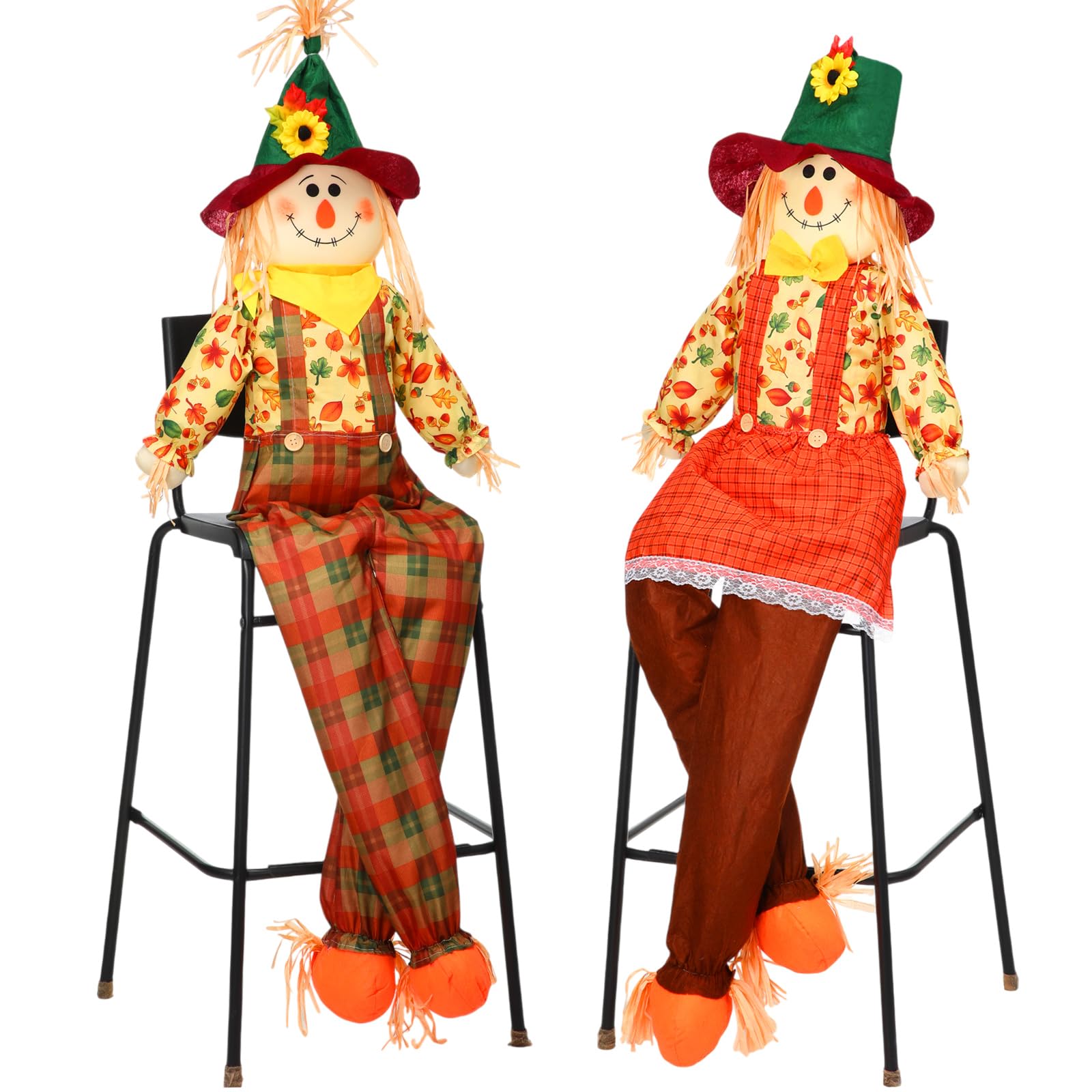 Seenelling 2 Pcs Life Size Scarecrow Fall 60" Sitting Scarec...