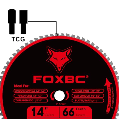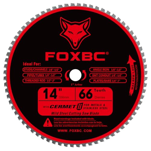 FOXBC 14 Inch Metal Steel Cutting Saw Blade 66 Tooth for Evolution 14 Inch Chop Saw and Other, Cermet Carbide Up to 5X Longer Life