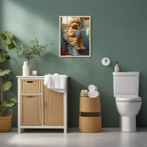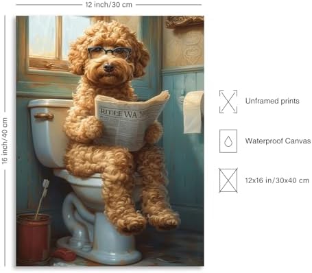 - Unique Design: This animal bathroom wall art features a dog sitting on the toilet reading a newspaper, which is very funny. Make your bathroom more personal and unique.