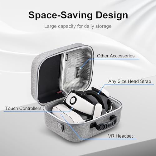 • Sufficient Room: The travel case for Oculus Quest 3 perfectly fit VR headset, all of elite strap, controllers, charger, cables and other accessories(NOT included).