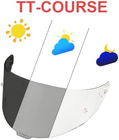 - One Shield All Conditions:TT-COURSE Photochromic Visor automatically adapt to the optimal tint in all light conditions and are clear at night and dark smoke in bright light.They provide seamless tint adaptation, visual quality and optimal protection.